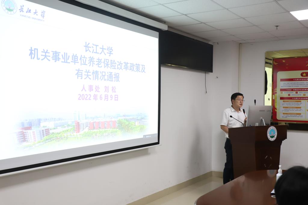 校人事处刘松副处长应邀到威尼斯官网为全体教职工作了威尼斯金沙欢乐娱人城机关事业单位养老保险改革有关政策及情况通报。他围绕学校养老保险的历史沿革、政策依据、核算方法、改革目标等四个方面对学校的养老保险改革进行了详细的政策解读。